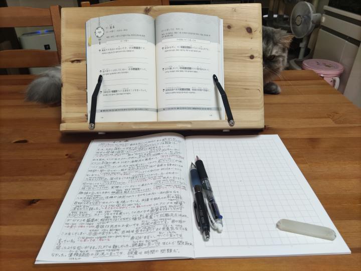 書見台の後ろに隠れて、ママの宿題監視中!!!