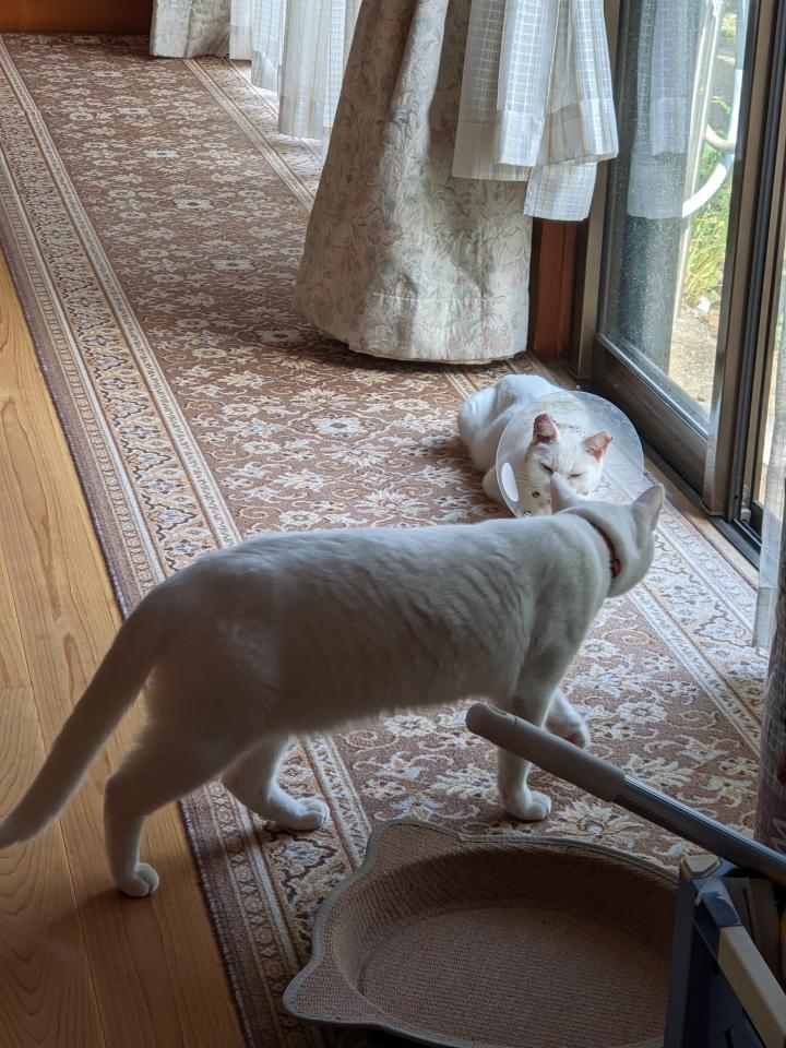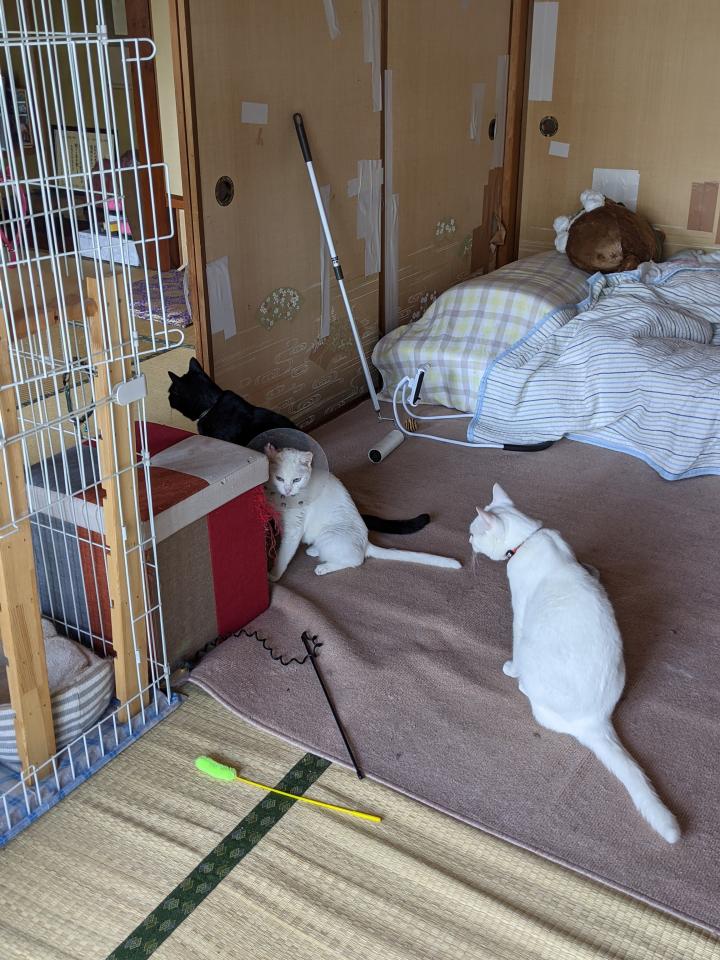 一年かかってやっと医者にいって避妊して伝染る病気ではないと判明したので家にいる他の子達と一緒に部屋に出せるようになりました😆🎉