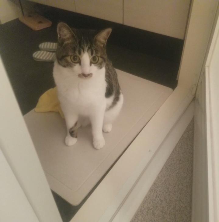 ガー子ちゃんと一緒に、お風呂場に付いてきたくろちゃん😊💕