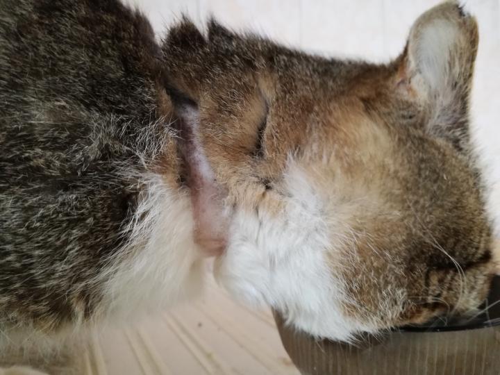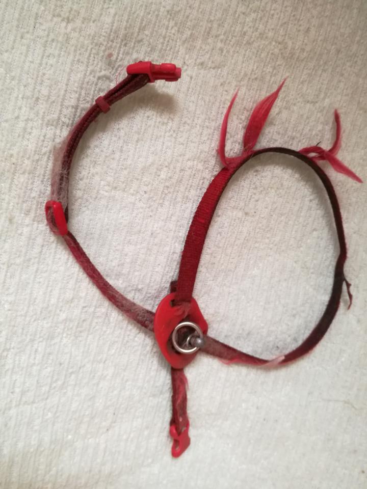 体格が大きいのに、子猫サイズの窮屈な首輪を付けていて、首がぎゅうぎゅうに締まっていました。