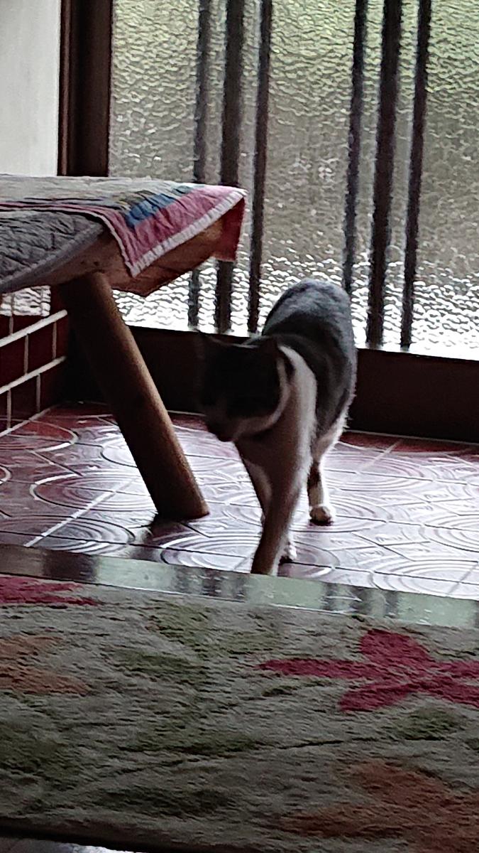 5月8日(木) リンちゃんはカメラ向けると殺気を感じるのかいなくなってしまう。 今日も朝食の後カーテンの向こうでコロコロしていたのに殺気を感じて避難したリンちゃんでした。