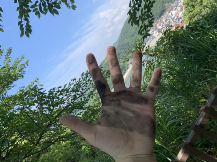 なぜか手のひらが黒い…
