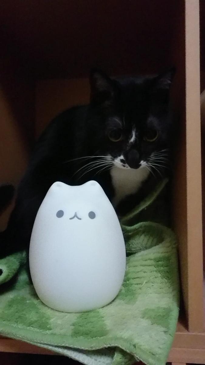 猫ちゃんライト(充電式)と記念撮影