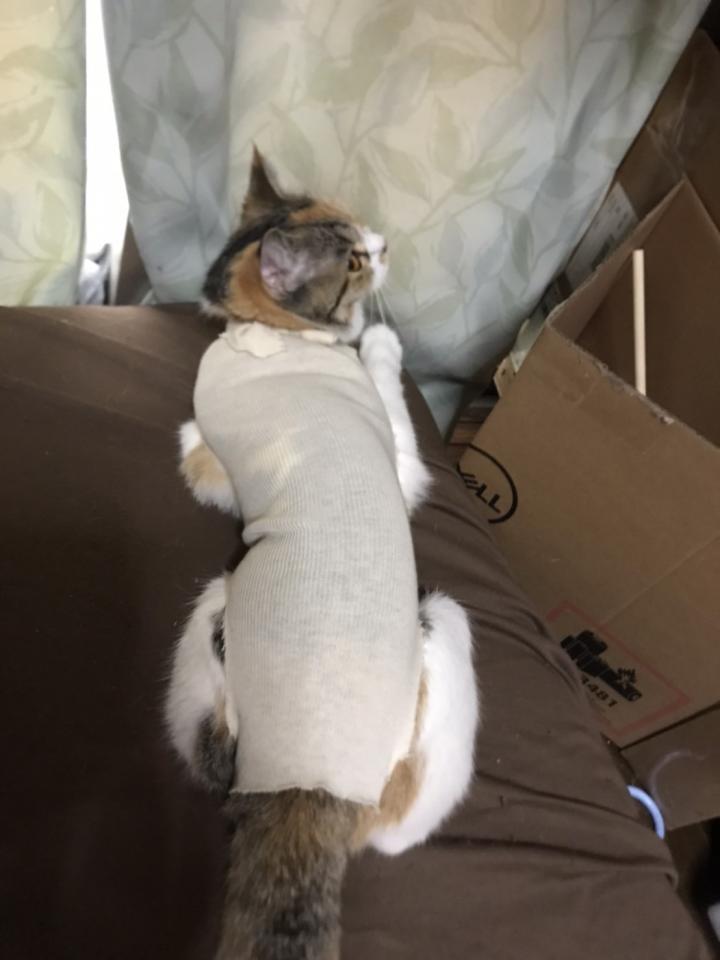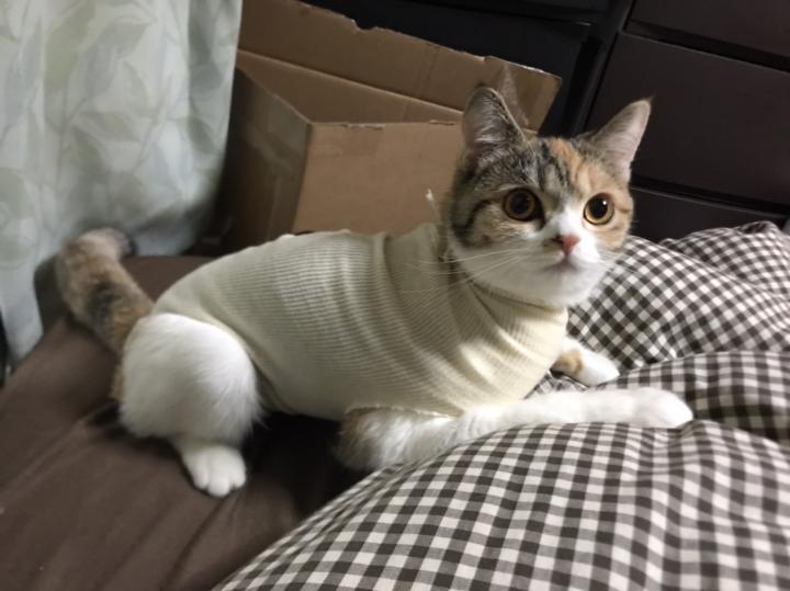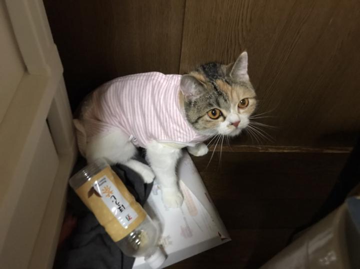 動きづらくかわいそうでした😢机に置いてあるものを全部落としてしまい