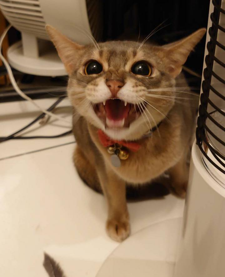 歩いているだけで襲ってくる為、部屋にいても普段から靴下と長ズボン常備となり、抱っこすら不能で、ちゅ〜るでもご飯でも、あげる際にいちいち威嚇され攻撃される。