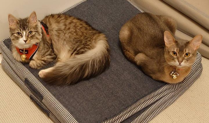 この過程で寝るポジション等の取り合いみたいのがあるかと思いきや、短毛種と長毛種では暑さの感度がだいぶ違うため、あまり問題にならないようだ。
