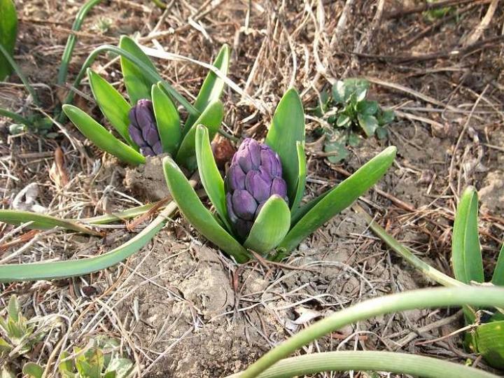ヒヤシンスの花芽も見えてます。