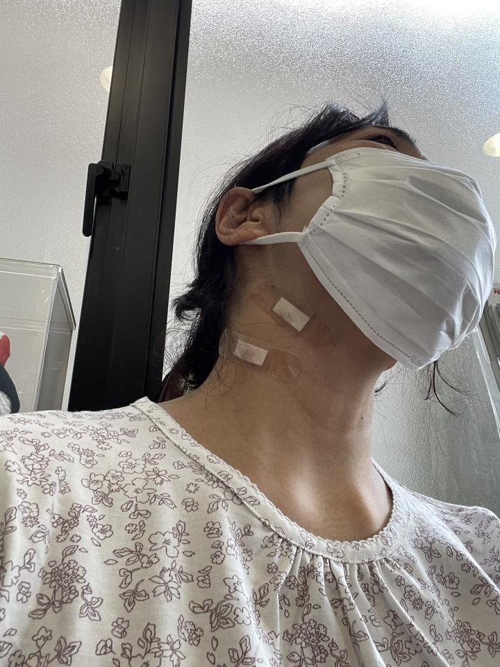 他の子たちは首輪で擦れた首筋からすんなり採血だけど、シュシュのさくらちゃんは、毛があまり擦れてないから首筋をバリカンで少し刈って採血。昨年ワクチンで少し熱が出たから余分にチクリ。