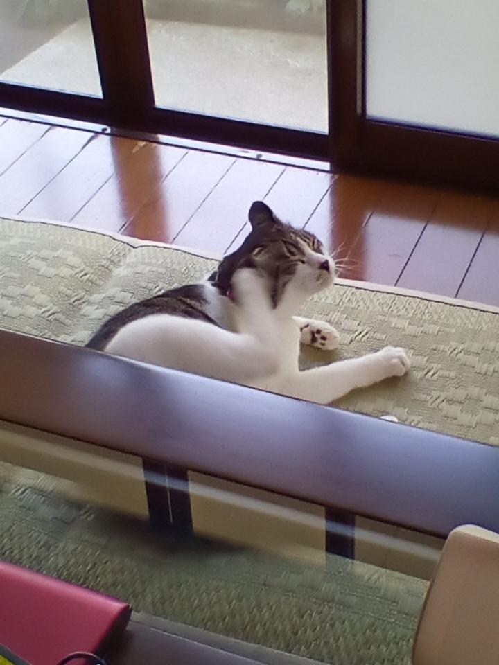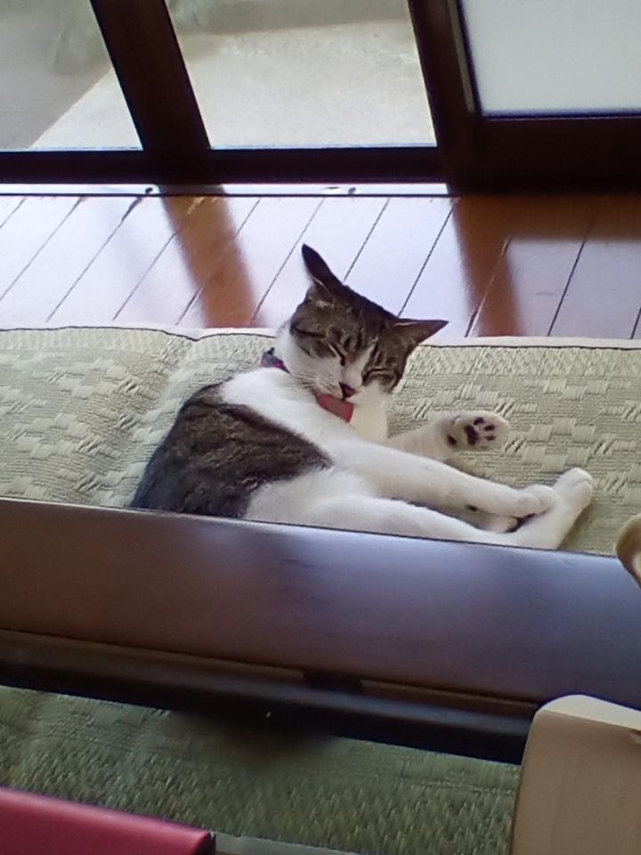 昨日嬶は新しい長座布団を買って来た。嬶は午後から仕事に行った。リンちゃんはちゃっかり座ぶとんを無断使用している。動物的な嗅覚を持っている嬶が嗅ぎ付けるのではないかとはらはらしながら知らんぷりを通そうと決意するミツジロウはんであった。