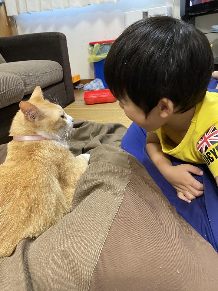 2人は同い年(ねこのちゃちゃは、人間の年齢にしたら3歳の息子よりかなり歳上ですが•••)で、とっても仲良しです。