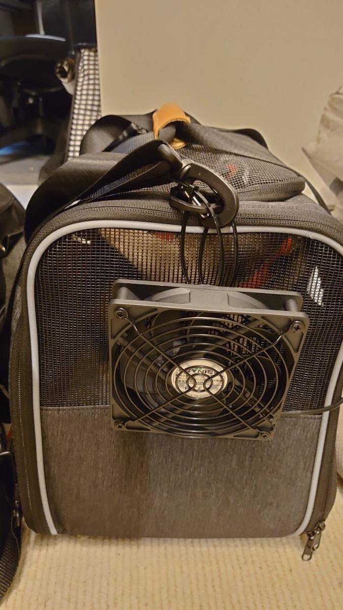 キャリーがちょっとへなちょこだったのと猫数が増えたのもあって新調し、ついでにUSBのファンとバッテリーも準備する。
