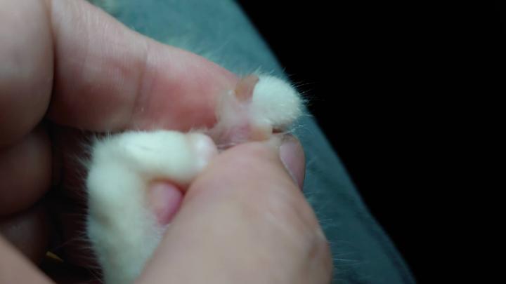 その為、子猫のうちから・日頃から肉球を触るとか握手するとか、ちゅ〜るをあげる時にお手を憶えさせるなど、手足を触らせることに抵抗感がないように慣れさせる必要がある。