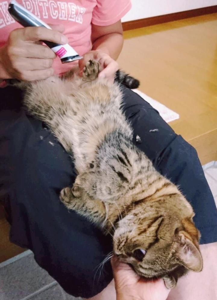 バリカンで足裏いじられるの嫌なんでしょうね〜😥