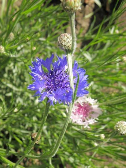矢車草が、もう咲きました。根元では、シラーが満開です。