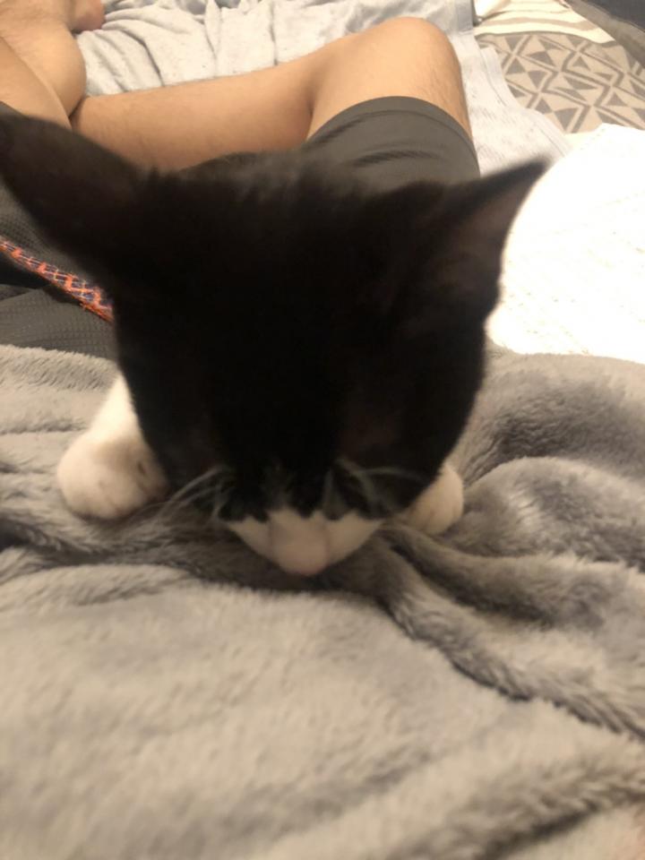 さっきも、筆者のデスクで寝てたので、トイレに行きがてら連れて行ってキンタマクラで寝ろと股ぐらに置いていったら、這い登ってモミモミチュバチュバしていた。