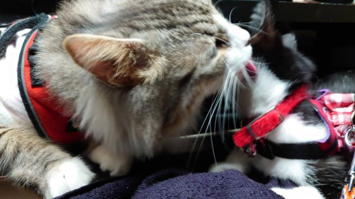 尻尾はぐんぐん伸びてきて、遠目に単体で見たら少し細めの大人猫かな?という様相。