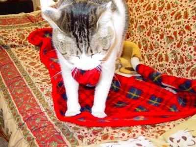 【 毛布をくわえて必死(*≧m≦*)ププッ 】