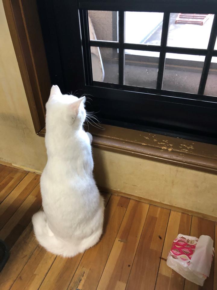 いつも、中から外を眺めています。時々スズメにからかわれています。