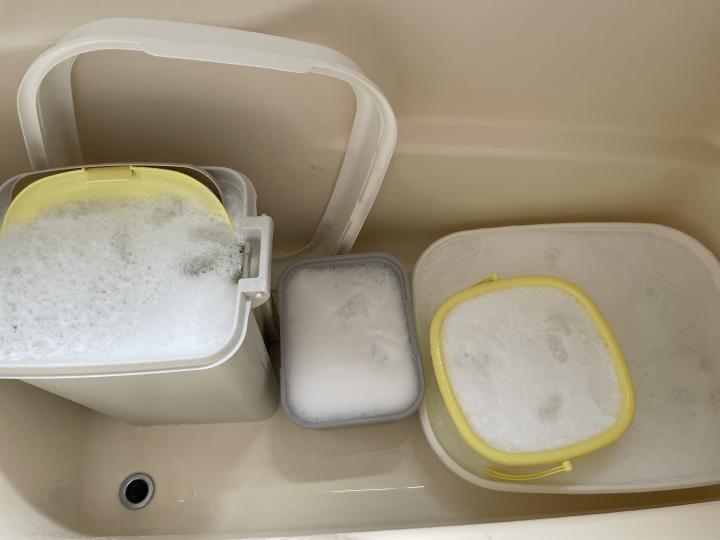 猫の数だけトイレがあるので、トイレのまるっと漬け置き洗いは一気にできないのが難点。やっぱり乾燥は太陽さんに任せたいし☀️
