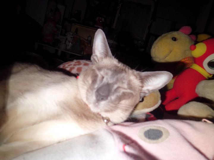 夕べはまた ほげ🐱ポニョ😻と寝ました💕