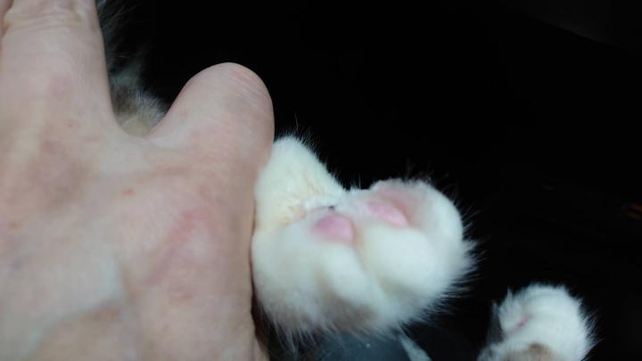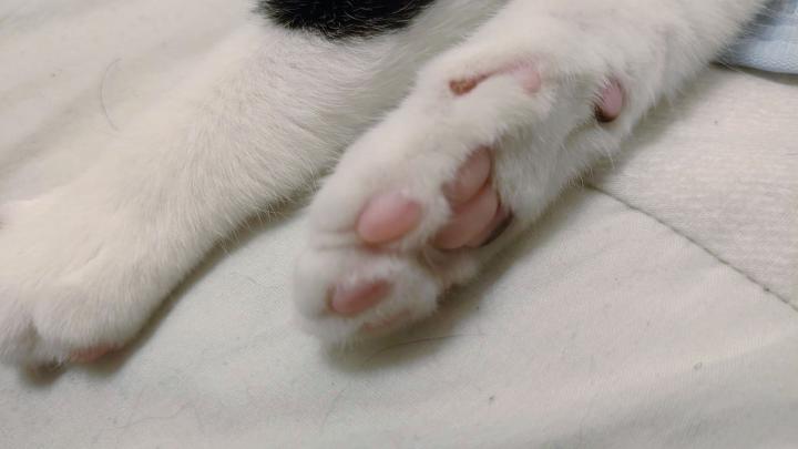 うちのちびねこの足。一度も切ってないがこのような状態で毛を切る必要がない。
