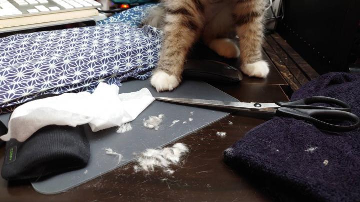 犬ならバリカンでやる手もあるんだが、猫の場合小さすぎて無理。