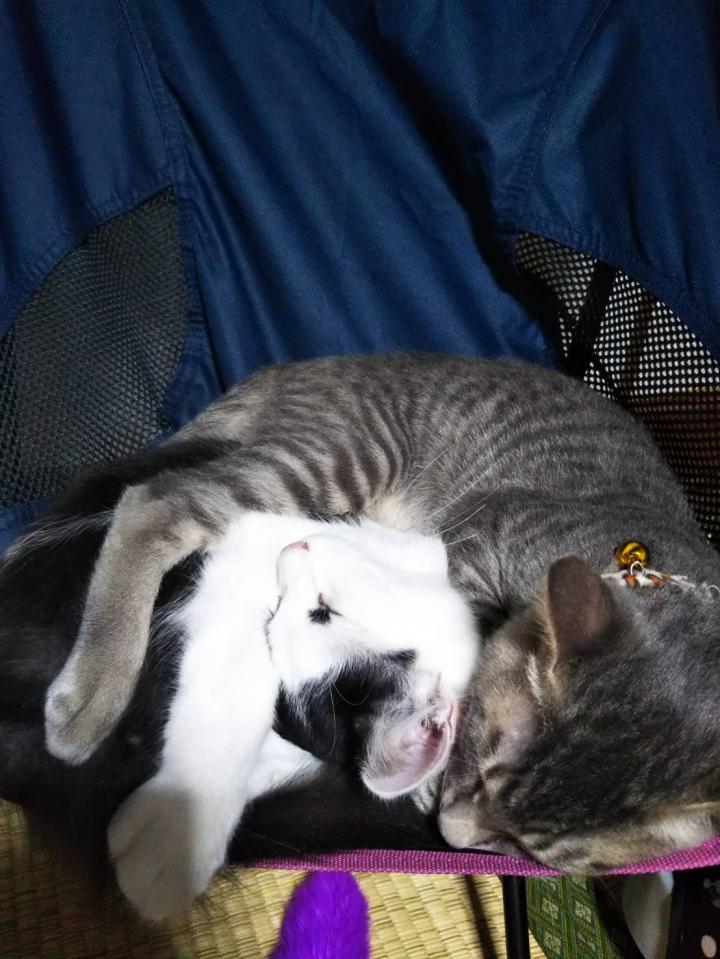 遂にはシェリを守るように一緒に寝て、私が近寄ったら久しぶりにシャー言われました😅