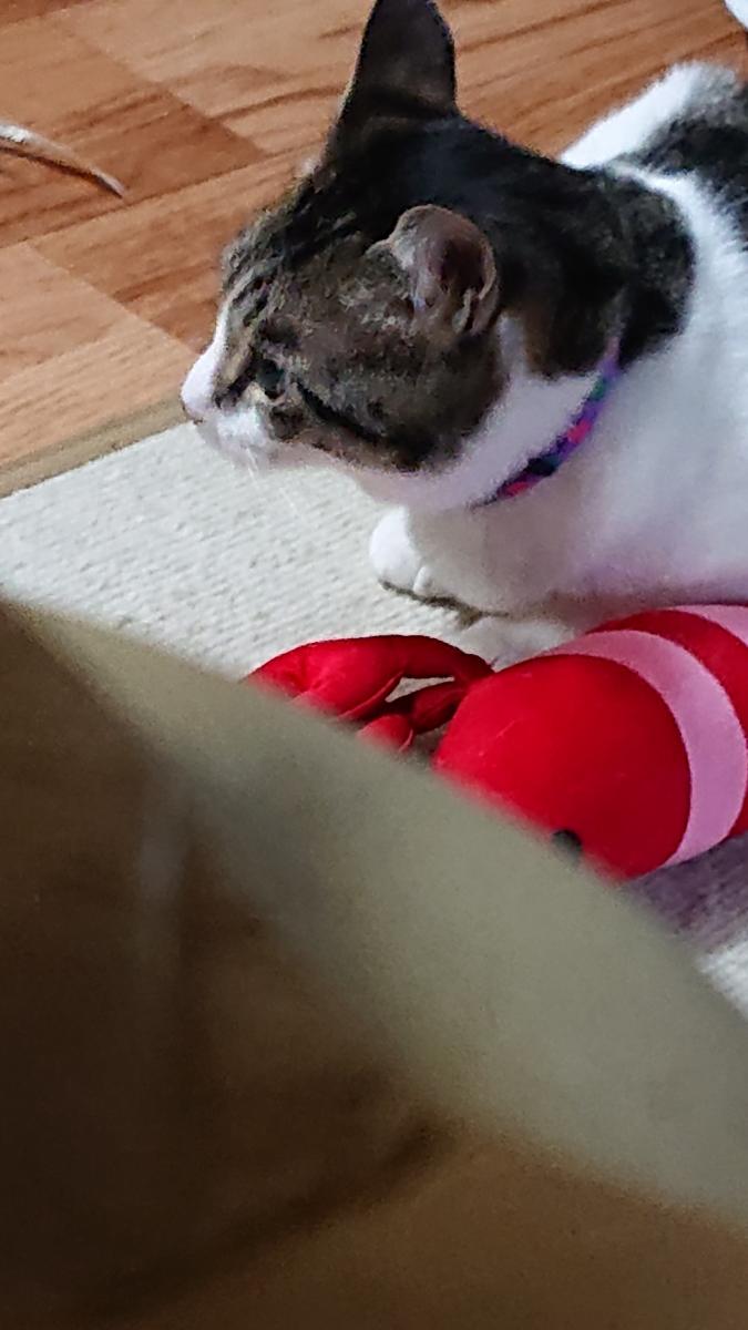 なんだか眠くなってきたミツジロウはんとお留守番が終わって遊びに夢中のリンちゃんでした。