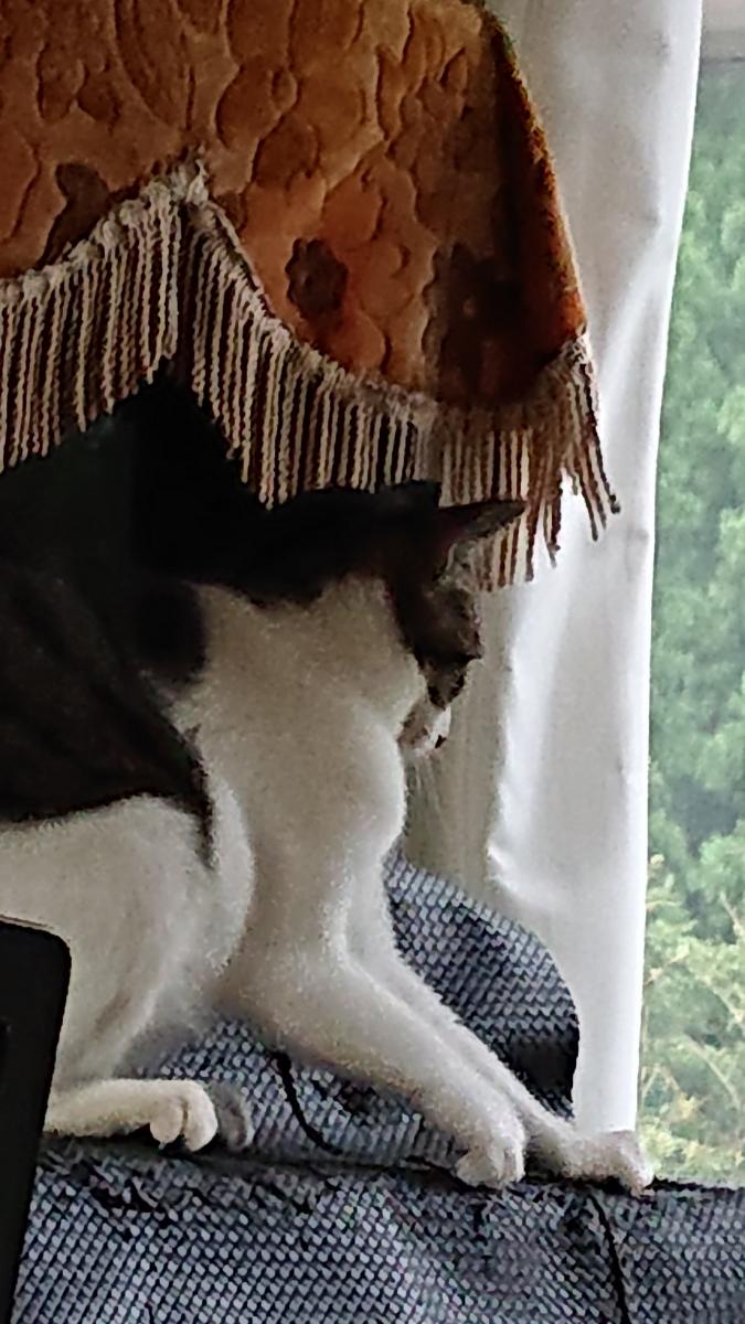5月8日(木) リンちゃんはカメラ向けると殺気を感じるのかいなくなってしまう。 今日も朝食の後カーテンの向こうでコロコロしていたのに殺気を感じて避難したリンちゃんでした。