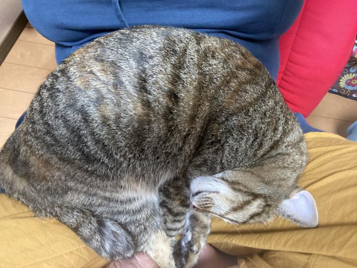 注射に行くとはつゆ知らず、私の膝でくつろぐはなちゃん