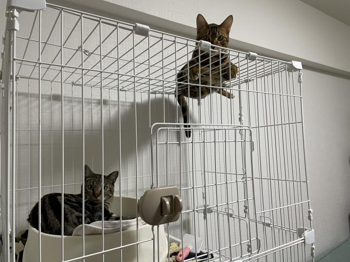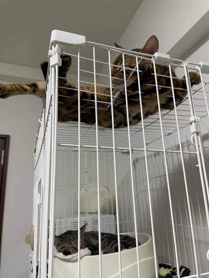 サジちゃんはケージの外に出してもすぐケージに戻るか、ソファやベッドの下に隠れちゃう、、、。