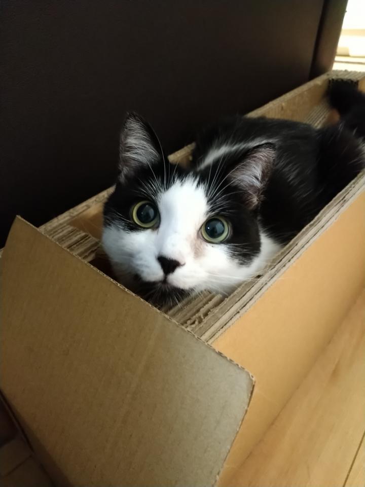 ムース:黒猫・お腹の一部だけ白い12才(左)