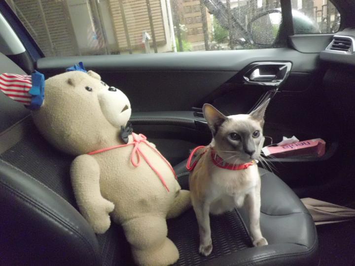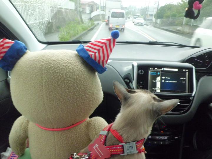 今朝の お見送り部隊は、、ポニョ😻と、テンドン🐻