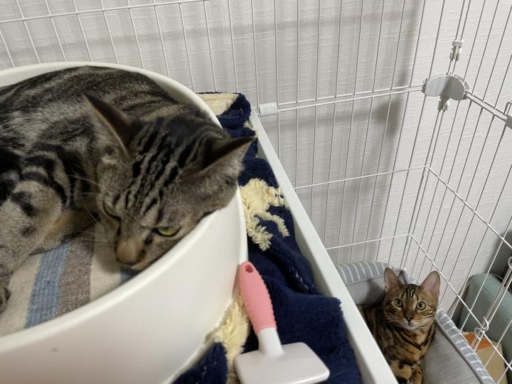 いつもお布団で一緒に寝てたのに、最近はさじちゃんと寝るようになっちゃってちょっと寂しいけど、仲良くなってくれたら嬉しいな😊