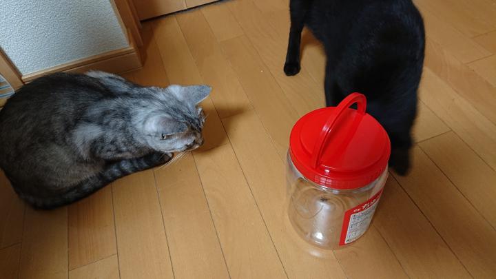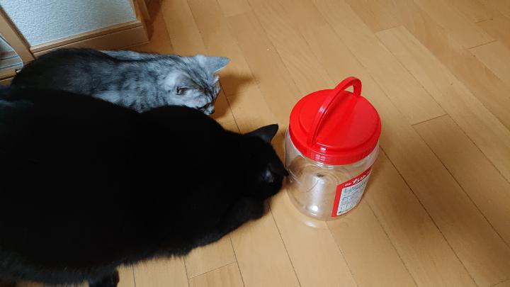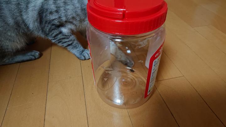 格闘の末、ちゅ~るの容器に捕獲成功!