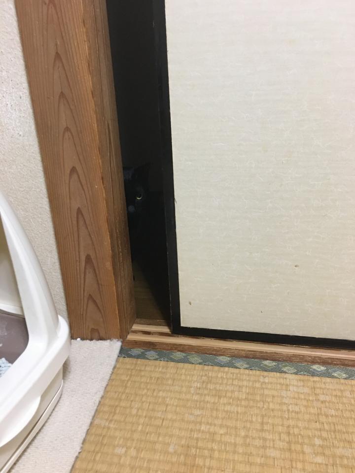 夜はルカちゃんと和室で寝ていますが、クーが隙間から覗きに来ます。(👁しか見えませんが…)