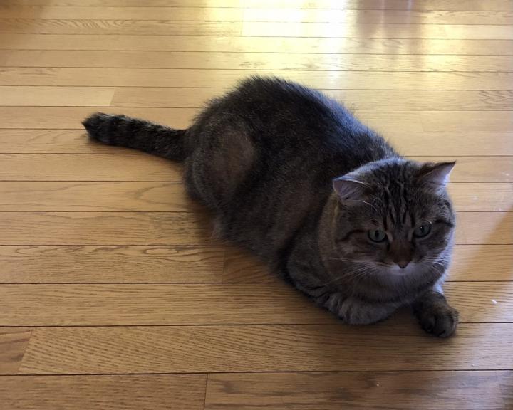 ご主人はぼくの面倒を見るのがおしごとにゃ。