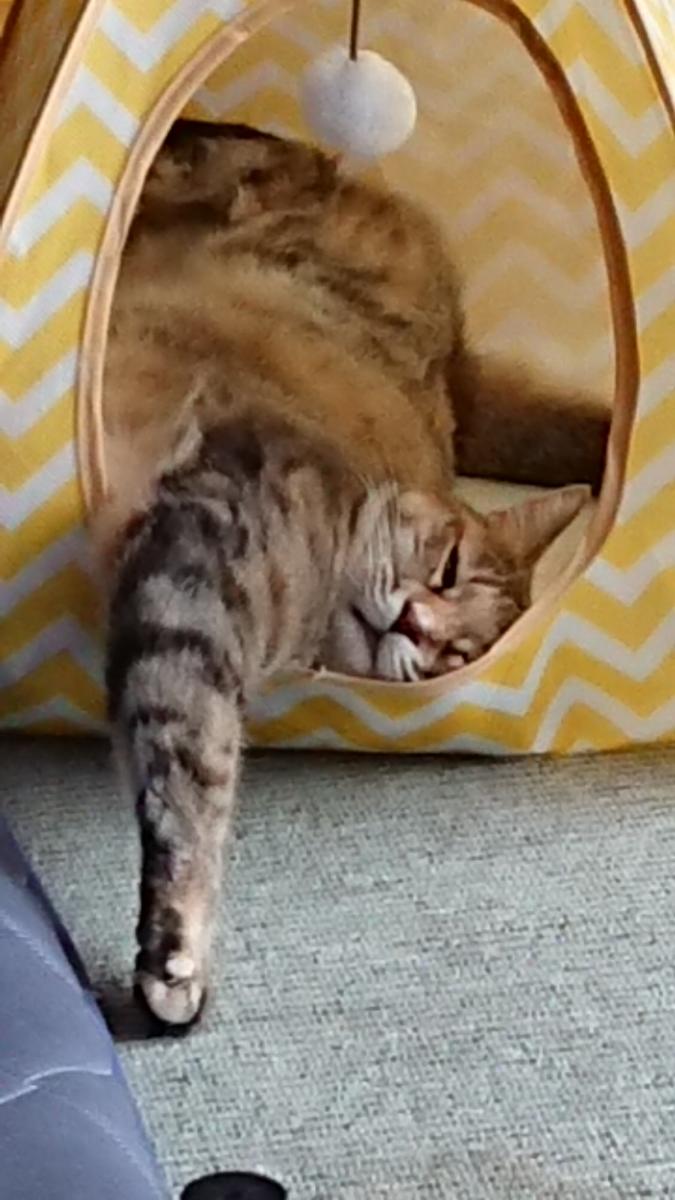 今は最近お気に入りの猫ドームにてひっくり返って寝ております☺️
