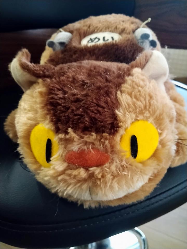 メイとの出会いは突然でした。名付けを迷っていたその時に、最初に目に映ったのは妹が旅行のお土産にくれた、となりのトトロのネコバスのぬいぐるみでした。
