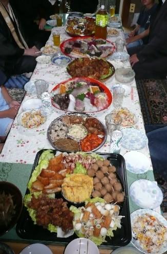 綿密な打合せも終わり、結構なご馳走が出来、狭いうちが狭いテーブルに乗り切らない位に♪