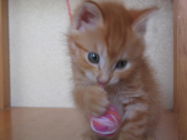 毛糸玉すご~く気に入ってくれて、おもいっきりじゃれてます。