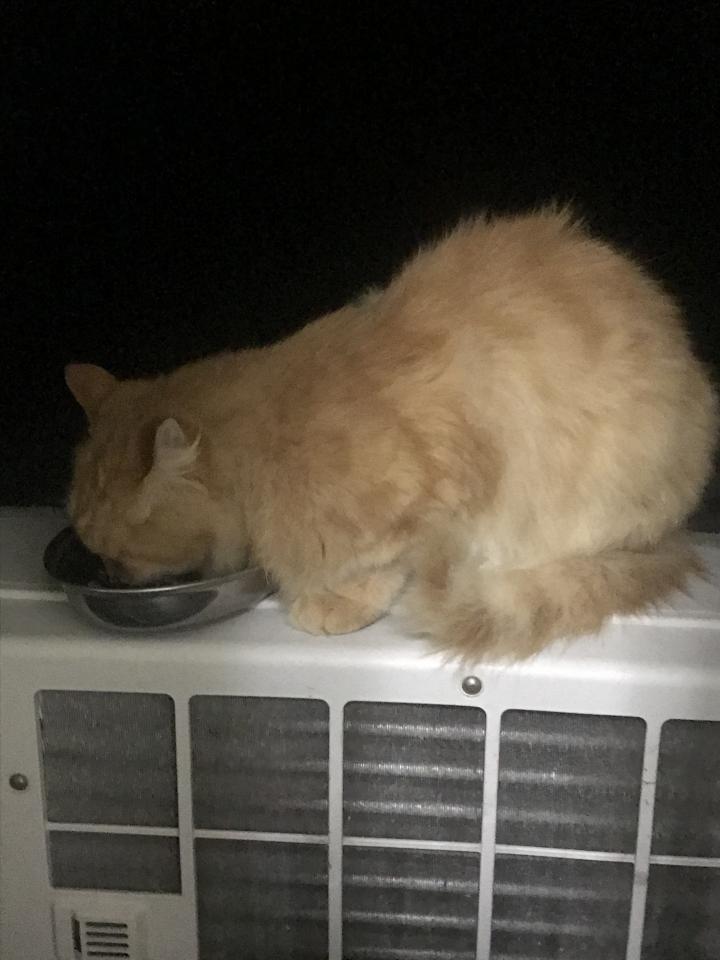 そしてとらちゃん。夜中に部屋の窓の室外機のところに来てくれたのでごはん。