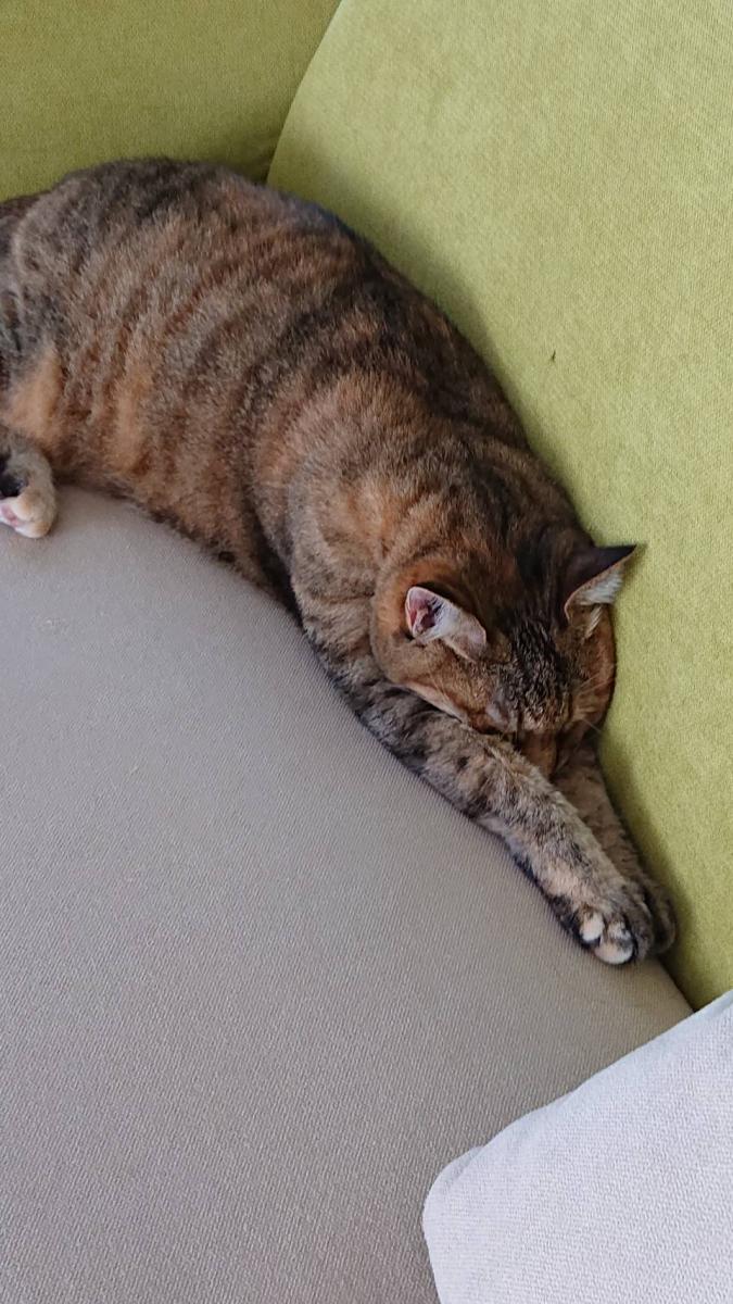 たらふくご飯を食べたちーさんはソファーに座ってグダグダしてたら仕舞いに寝ておりふと見ると