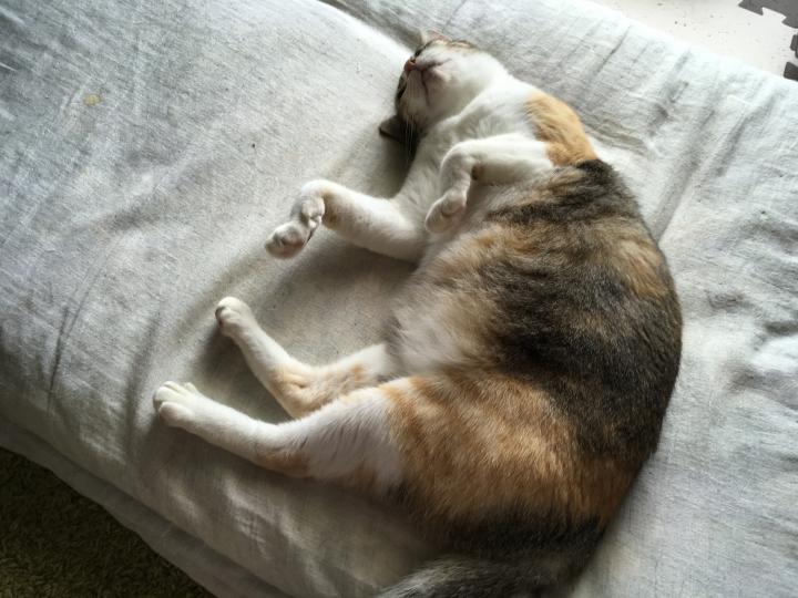その上のクッションの上だったり、猫ちゃん用に置いてる布団の上に