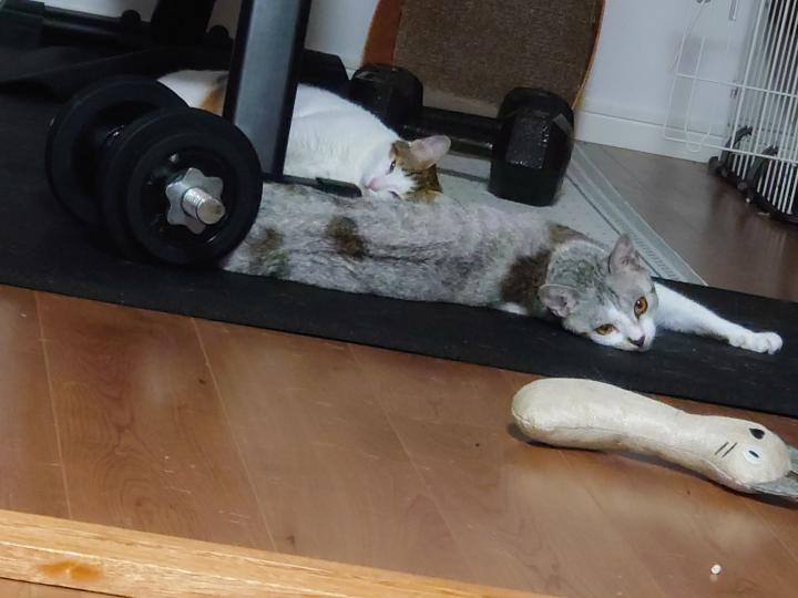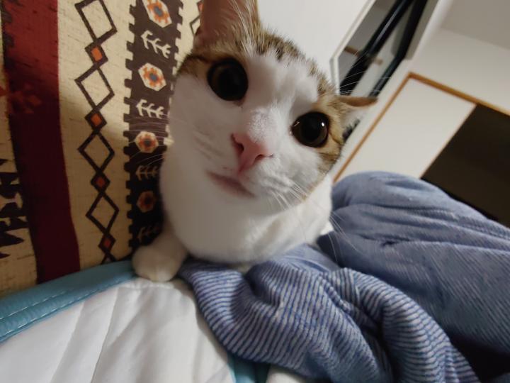 サーフィーは腕枕を卒業して、最近は私の足元で眠るようになったのですが、クインは私のお腹の上に乗って眠るようになりました😆
