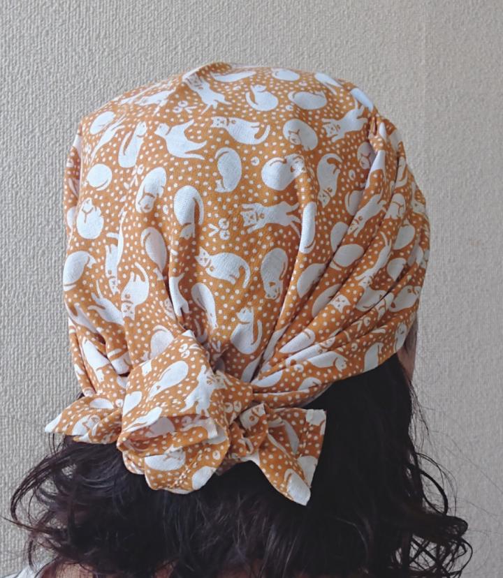 そこで、綿100%の手ぬぐいを購入し、ほっかむりする事にしました。