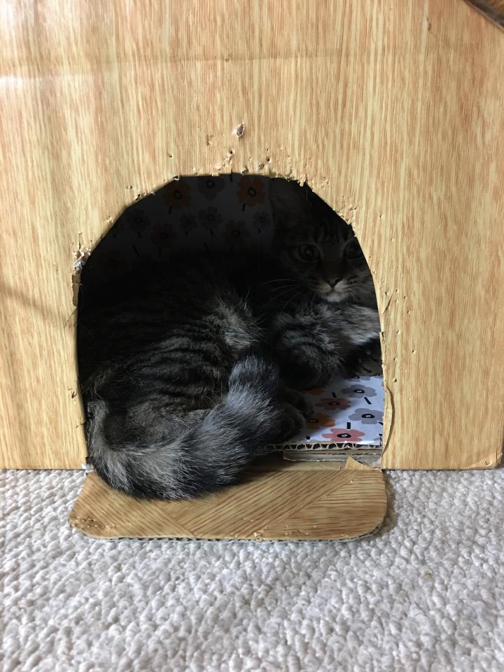 ケージの中を、あっちこっち駆け回り、その後ダンボールハウスに入りっぱなし💦。