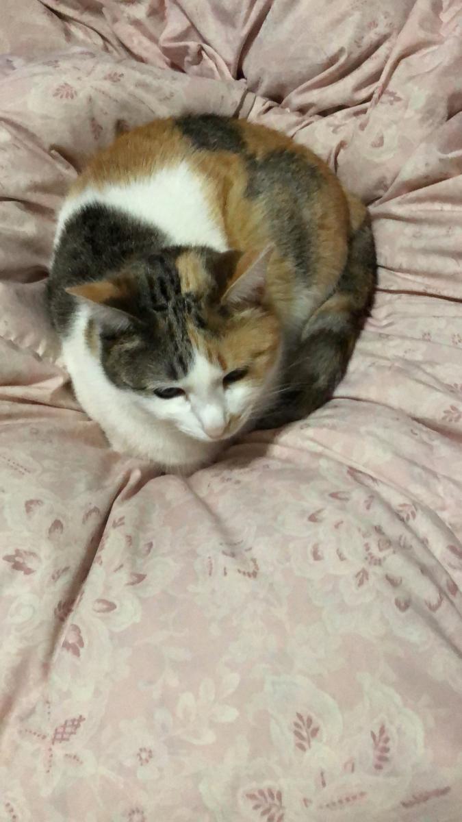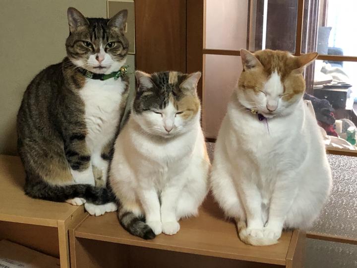 の様子です。6年前に家族になった長女の三毛猫タマは6歳♀