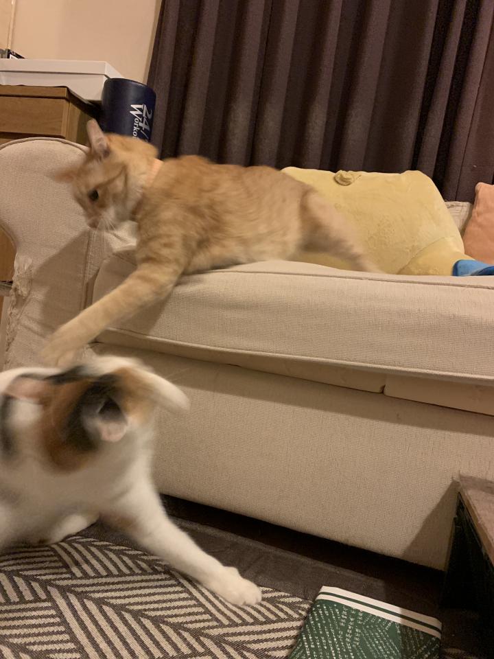 夜には すっかり元気になり もっちゃんとケンカ😸(←本人楽しい)