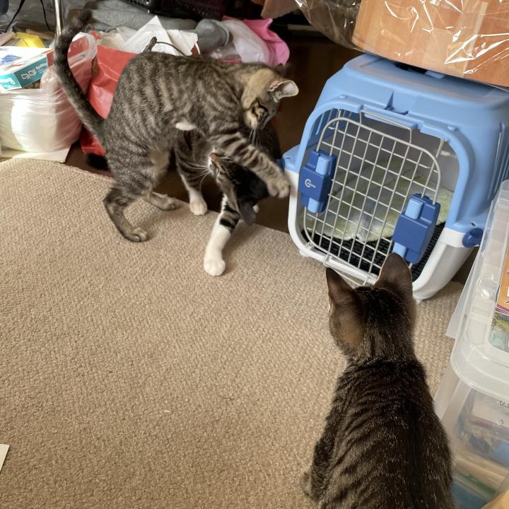 ゲージ越しなら強気なのか、お顔に猫パンチするのにね🤣